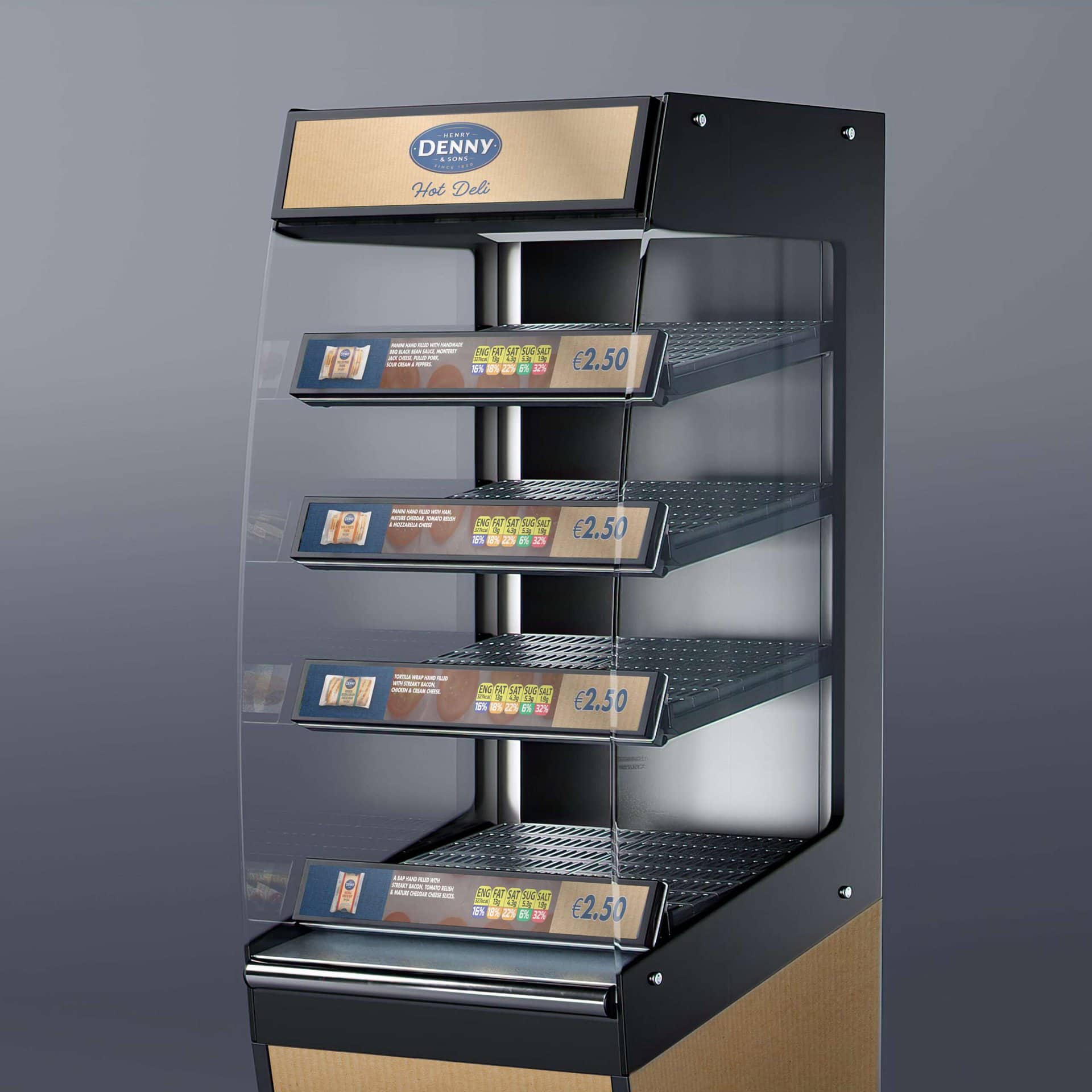 Nuestros armarios digitales para alimentos para llevar, disponibles en configuraciones de conservación a temperatura ambiente, refrigerada, a temperatura controlada y caliente, se pueden personalizar para adaptarse a cualquier entorno minorista.